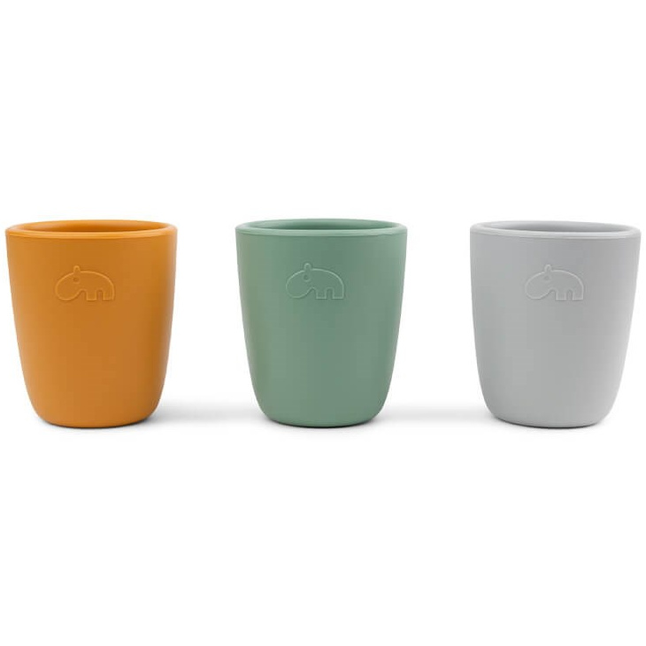 Sett med 3 små kopper i silikon som er lett å holde i for små hender.