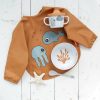 Praktisk spiseforkle til de minste med søte venner fra Sea friends serien med Jelly og Wally. Myk og vanntett, holder barnet tørt under måltidet. Smekken er enkel å tørke av, har elastikk i ermene og lukkes med en myk borrelås i nakken.