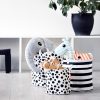Praktisk sett med myke oppbevaringskurver dekorert med glade prikker og striper. Tre mindre kurver som kan brukes til leker, små skatter, eller bleier og kremer. Den prikkete kurven er størst med diameter på 32 cm og høyde 33 cm, dyrevennene er 26 x 27 cm og ballongene 20 x 21 cm