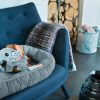 Praktisk sett med myke oppbevaringskurver dekorert med glade prikker, dyrevenner og ballonger. Tre mindre kurver som kan brukes til leker, små skatter, eller bleier og kremer. Den prikkete kurven er størst med diameter på 32 cm og høyde 33 cm, dyrevennene er 26 x 27 cm og ballongene 20 x 21 cm
