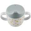En lett kopp med to håndtak og drikketut, perfekt å begynne med. Når øvelse har gjort mester tar man drikketuten av og har en vanlig kopp med håndtak. Gullprikkene gjør koppen litt ekstra gøy.