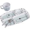 - mål: tallerken 28,5 x 19 cm, kopp: ø 8 x 6,5 cm, bestikk 14 cm.