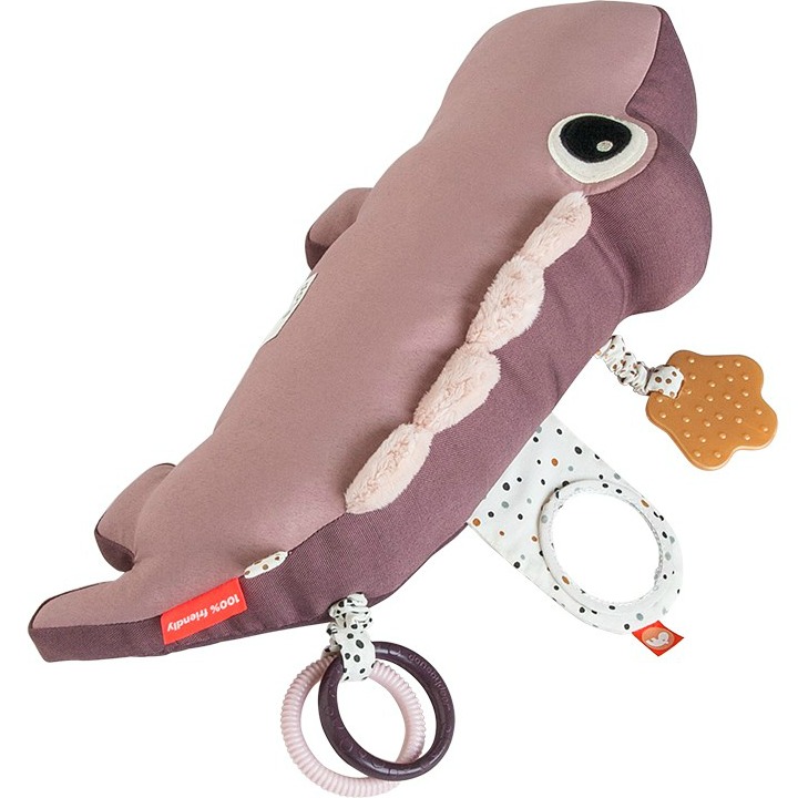 Fine cool croco er en underholdningsleke til min i som skal øve på å ligge på magen. Hjelper til å styrke nakkemusklaturen imens mini leker. De ulike aktivitetene underholder og gjør at mini orker å ligge på magen lengre for hver gang. De ulike ringene, biteleken, speil og knitrelydene er morsomme, samtidig som at den er en koseleke.