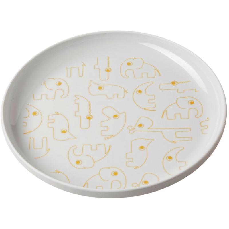Søt tallerken med alle dyrevennene i gull. Når maten forsvinner kommer dyrene frem.