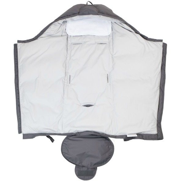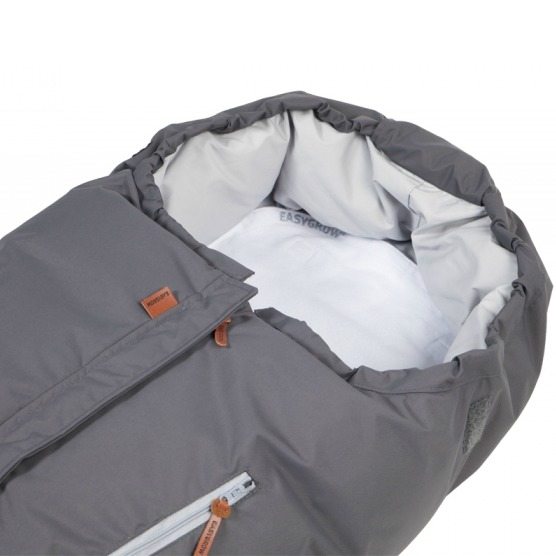 EASYGROW Hood Wool er bestselgeren som nå har kommet med vaskbar ull i ryggen. Posen har forlengerdel, flanellpute (gulpeklut) og hull til 5-punkt sele med klaffer over for minimalt varmetap og anti-skli i ryggen. Blåser det surt kan åpningen snurpes godt sammen rundt barnets hode.