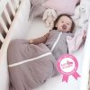Sjekk om baby får hodet gjennom åpningen på en lukket pose før bruk. Riktig størrelse er når baby ikke får hodet gjennom nakkeåpningen på en lukket nattpose