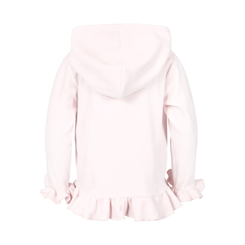 Ellie cardigan is a relaxed and elegant velour cardigan and has cute ruffle details. Also comes in pink.