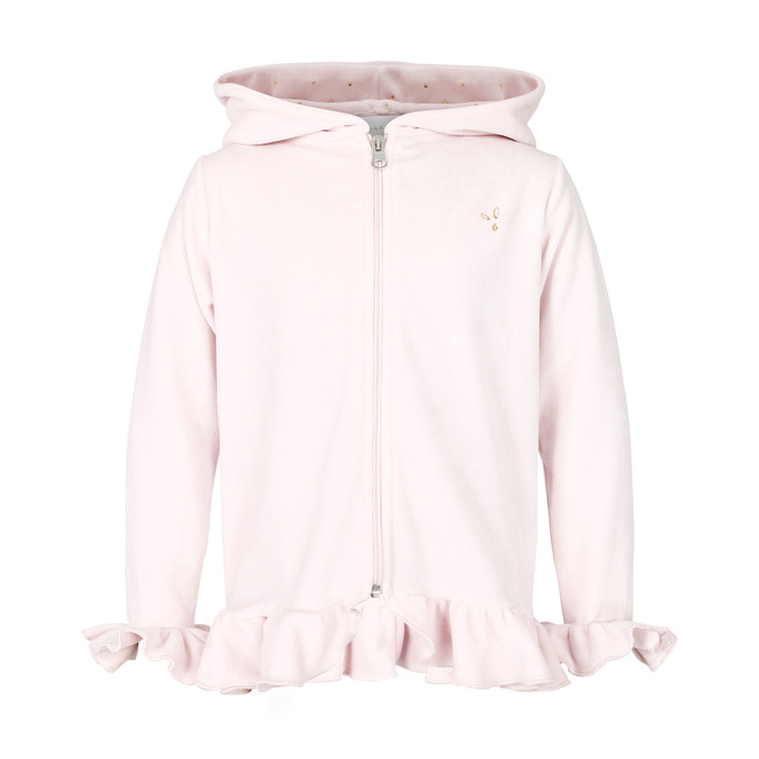 Ellie cardigan is a relaxed and elegant velour cardigan and has cute ruffle details. Also comes in pink.