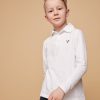 Super soft cotton longsleeve with collar, perfect to dress up and down. Small in size – go one size up.