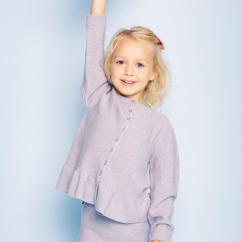 Sara cardigan is made of 100% merino wool. The sweater has a round neck with buttons at the front. Lovely ruffles at the end of the sweater.