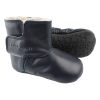 Varme booties i skinn og lammeull med borrelås i siden og myk gummisåle.