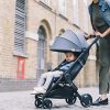 Vognen foldes lett sammen med en hånd, og har smidig handlekurv samt en liten lomme i ryggen som er perfekt for mindre saker som mobilen eller lommeboken. Vognen er utstyrt med tynn mesh som slipper inn godt med luft på varme dager, den kan også dekkes til når det blir kaldere ute. For de minste så finnes det nyfødtpakke. Dette gir samme komfort som en stor vogn.
