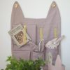 Veggoppbevaring med små lommer i slitesterk bomullskanvas med korktavle og strikker. Perfekt til små skatter, minner og tegnesaker.