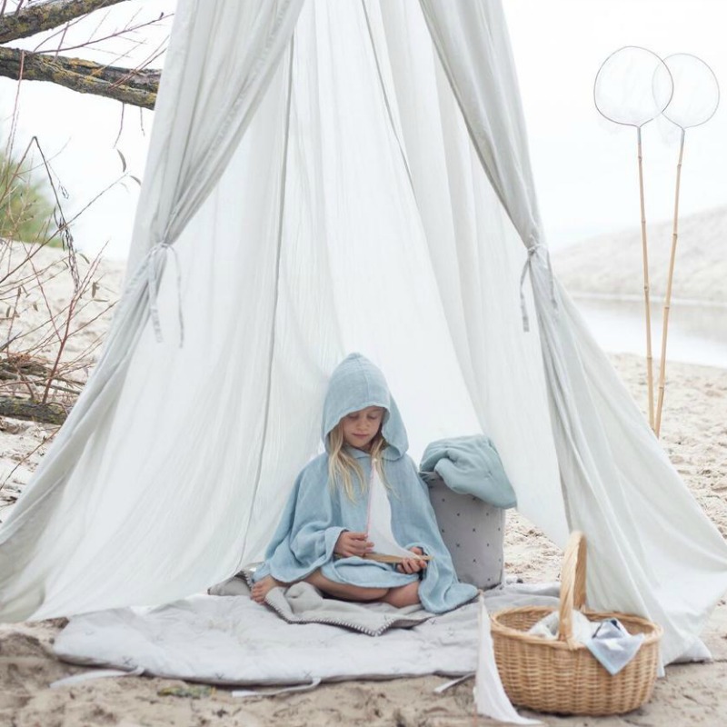 Fantastisk myk og sval poncho med hette i økologisk bomullsmuslin.