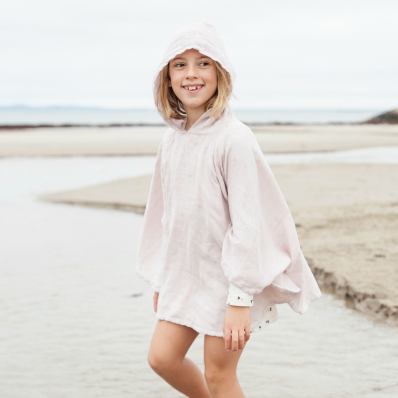 Fantastisk myk og sval poncho med hette i økologisk bomullsmuslin.