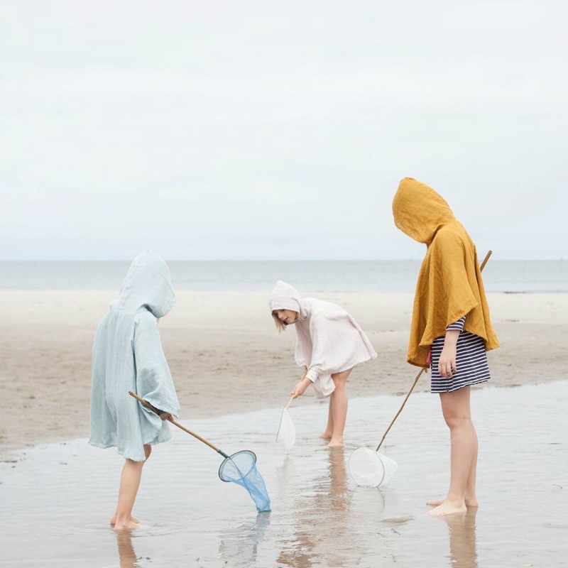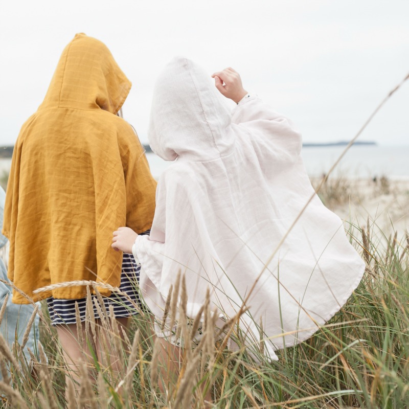 Fantastisk myk og sval poncho med hette i økologisk bomullsmuslin.