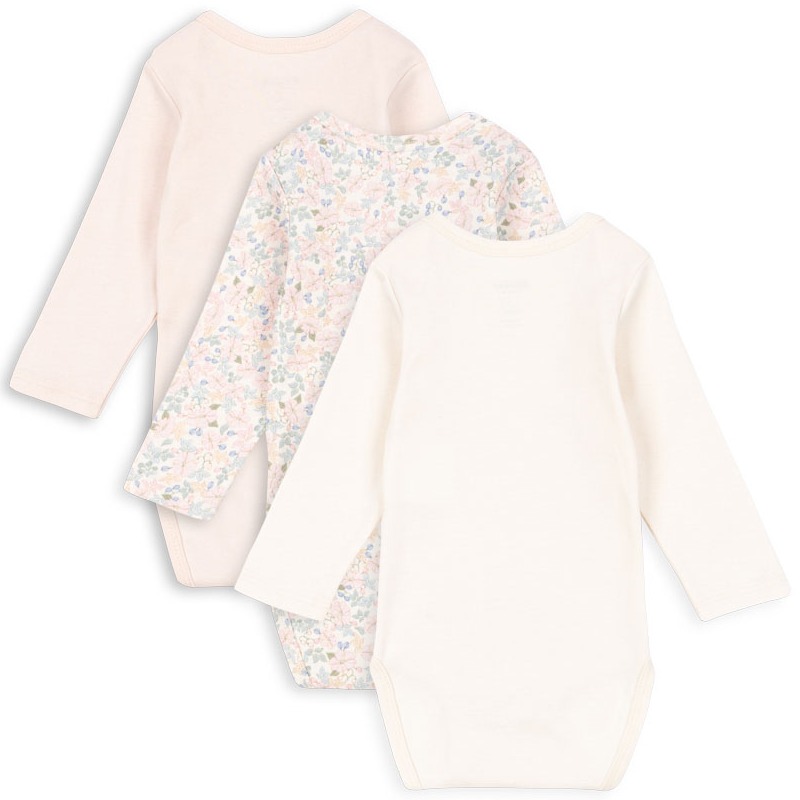 Fio bodyene kommer i en praktisk 3-pakning og er laget i myk, økologisk bomull med fleksibel ribbestrikk som gir god bevegelighet og komfort gjennom hele dagen. De lange ermene gjør dem perfekte som et behagelig basisplagg året rundt.