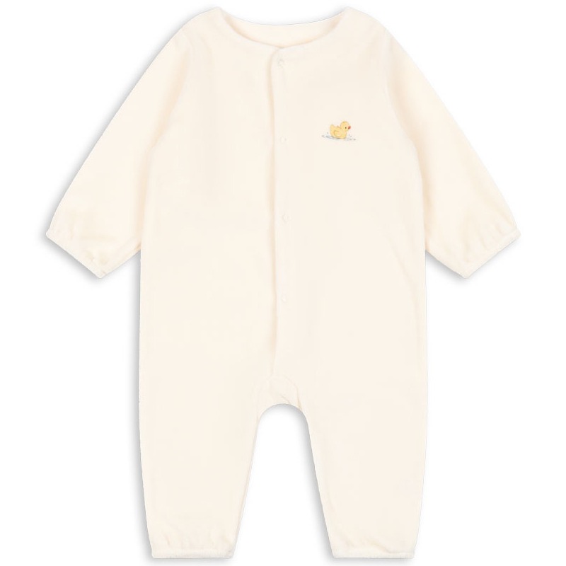 Elu heldress er laget i en komfortabel bomullsblanding med en myk og behagelig struktur som føles god mot babyens hud. Den lune kvaliteten gjør dressen perfekt til både hvile, lek og rolige dager hjemme.