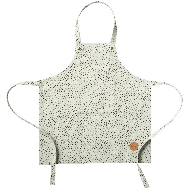 Beskytt barnas klær når de hjelper til på kjøkkenet.  Det fine forkleet i økologisk bomull fra Ferm Living passer både 1-åringen og barn i skolealder (og de minste mammaene 😉 ). Den geniale stroppen rundt nakken har trykknapp i begge ender og er justerbar.
