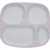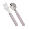 Pent spisesett i 100% melamin med 4-roms tallerken, tutekopp med to hanker og bestikk fra Filibabba. Leveres i rosa og varm grå.
