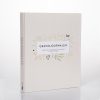 Boken har silkebånd og gode ark å skrive på.