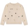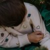 En myk og varm strikkegenser med nydelige, broderte motiver av hjerter, måner, eikenøtter og små snegler. De fine detaljene gir plagget et lekent, men samtidig tidløst uttrykk. Genseren har ribbede kanter i både hals og ermer, raglanfelling og en klassisk passform som gjør den behagelig og enkel å bruke gjennom hele sesongen.