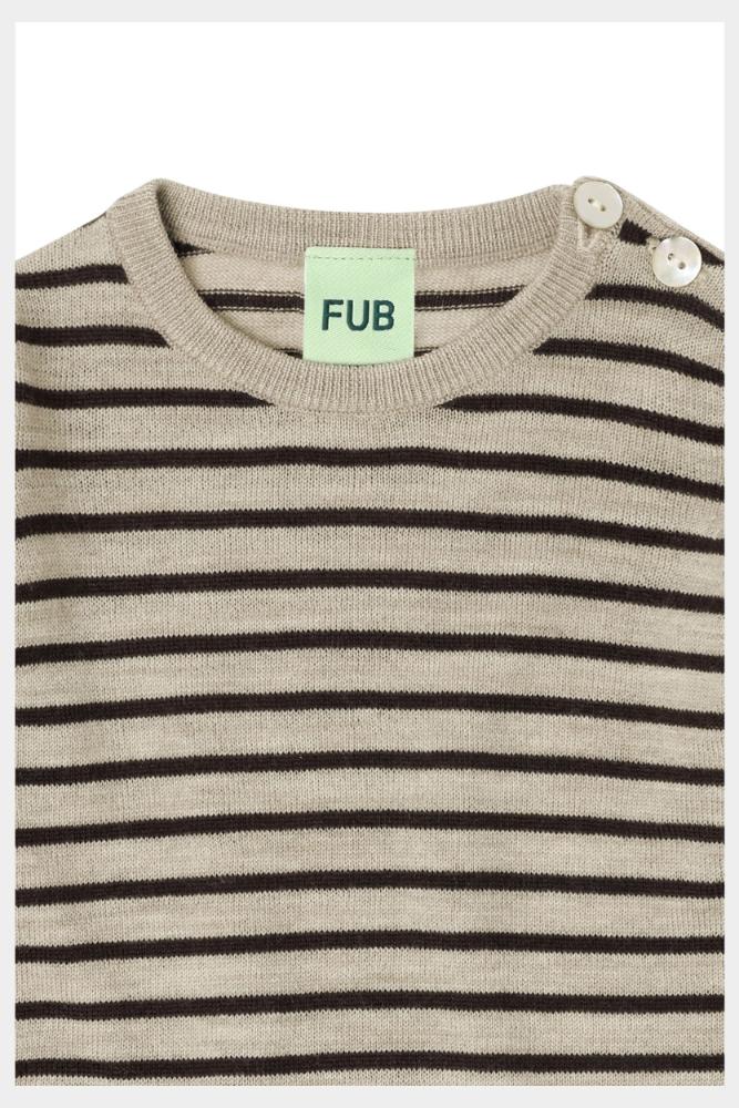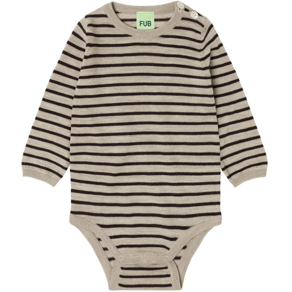En nydelig body i ekstra fin merinoull, strikket i lett single jersey med klassiske striper. Bodyen har rund hals og er designet med perlemorsknapper på skulderen samt trykknapper nederst for enkel av- og påkledning. Perfekt kombinasjon av stil og komfort til de minste.