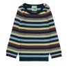 Glattstrikket babygenser – en FUB-klassiker! Løs passform, raglanermer og diskret finish nede og på ermekantene. Genseren har en rund ribbestrikket halsåpning, lukking på ene skulderen med treknapper og håndlagde knappeløkker.
