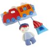 En morsom myk bilstolleke med tog. Kan også festes på vognen, lekegrinden eller i sengen.