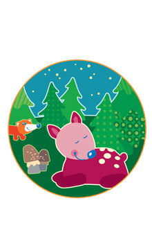 Nattlampe som gir et mykt og behagelig lys for den lille. Lampen prosjekterer et koselig bilde av et rådyr på veggen. Settes direkte i stikkontakt, tenner når det blir mørkt. Måler 14 x 7,5 cm.