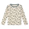 Langermet T-skjorte i myk, elastisk ull og bambusviskose med trykk av dinosaurer. Laget av bambusviskose på innsiden og ull på utsiden. Dette produktet er Oeko-Tex 100®-sertifisert.