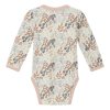 Langermet body i behagelig, elastisk ull og viskose av bambus med trykk av blomster og blader. Modellen kneppes på venstre skulder og mellom bena. Laget av bambusviskose på innsiden og ull på utsiden. Dette produktet er Oeko-Tex 100®-sertifisert.