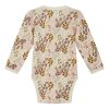 Langermet body i behagelig, elastisk ull og viskose av bambus med trykk av blomster og blader. Modellen kneppes på venstre skulder og mellom bena. Laget av bambusviskose på innsiden og ull på utsiden. Dette produktet er Oeko-Tex 100®-sertifisert.