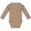 Langermet body i myk og god blanding av ull og bambusviskose med liten skjortekrave og stolpelukking. Modellen lukkes med trykknapper mellom bena. Bambusviskose er mykt og behagelig å ha på, og er ekstra allergivennlig.