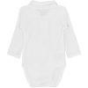 Langermet body i myk og god blanding av ull og bambusviskose med liten skjortekrave og stolpelukking. Modellen lukkes med trykknapper mellom bena. Bambusviskose er mykt og behagelig å ha på, og er ekstra allergivennlig.