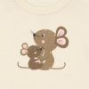 Langermet body i behagelig, elastisk ull og viskose av bambus med trykk av to mus på brystet. Kneppes på venstre skulder og mellom bena. Laget av bambusviskose på innsiden og ull på utsiden. Dette produktet er Oeko-Tex 100®-sertifisert.