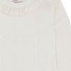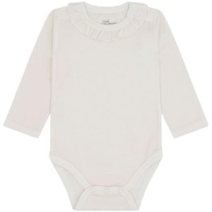 Bodyen har et delikat uttrykk med en feminin krage, som gjør den spesielt fin under kjoler eller strikkede plagg. Utsiden i ull holder barnet varmt, mens innsiden i bambusviskose gjør plagget mykt og kløfritt mot huden.