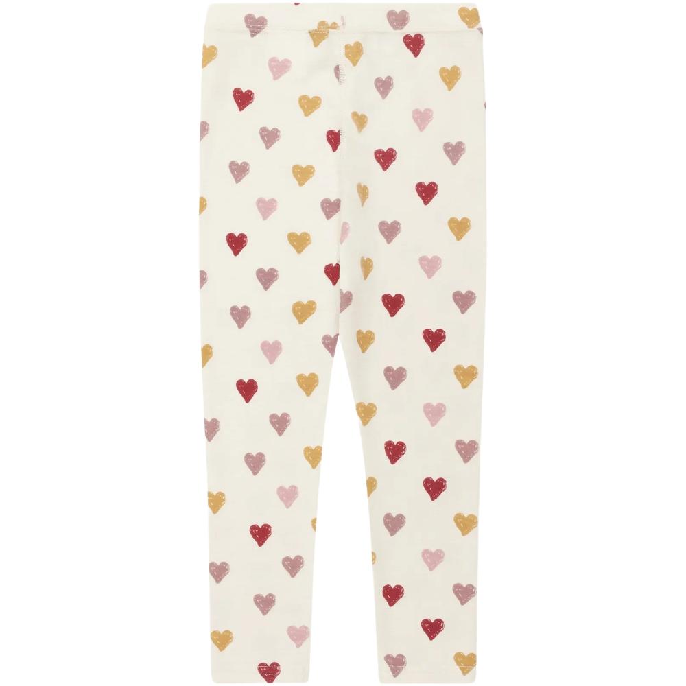 Laki Hearts-buksen fra Hust & Claire er laget i en myk og fleksibel blanding av ull og bambusviskose – perfekt for kalde høst- og vinterdager. Ribbestrikken gjør at buksen sitter godt på kroppen uten å stramme, og det delikate hjertemønsteret gir en sjarmerende detalj. Kan enkelt matches med tilhørende genser for et komplett og komfortabelt sett.
