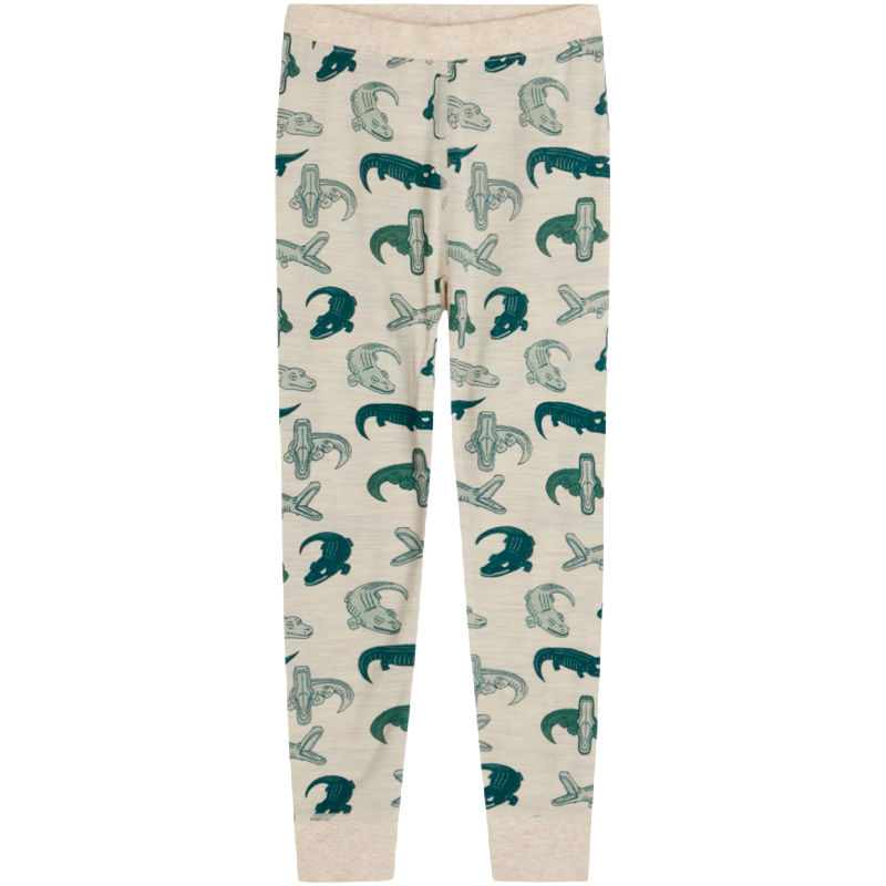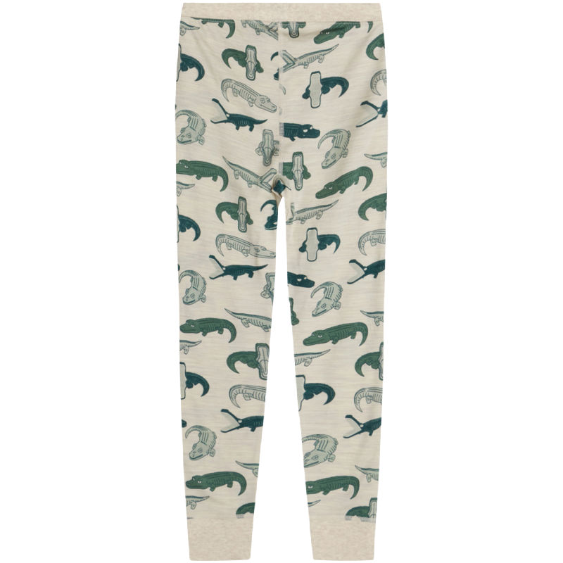 Superdigg bukse i nydelig myk blanding av ull og silke med et superfint krokodilletrykk. Buksen har ribb på bena og elastikk i livet.