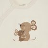 Langermet heldress i behagelig, elastisk ull og bambusviskose med trykk av to mus på brystet. Heldressen lukkes med knapper foran med omslagslook over magen og ned til venstre fot. Ved føttene er det påsatt en foldefot som man kan få foten gjennom, men som også kan foldes og brukes som en sokk. Det er foldefot opp til størrelse 86. Ull på utsiden og bambusviskose på innsiden. Dette produktet er Oeko-Tex 100®-sertifisert.