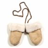 De mykeste babyvottene i semsket skinn fra HUTTEliHUT uten tommel. Vottene har snor som binder de sammen så de ikke blir borte fra hverandre. Pels inni, supervarme og gode, mye finere live enn på bilder. Fargen kan variere litt da hvert vottepar er unike.