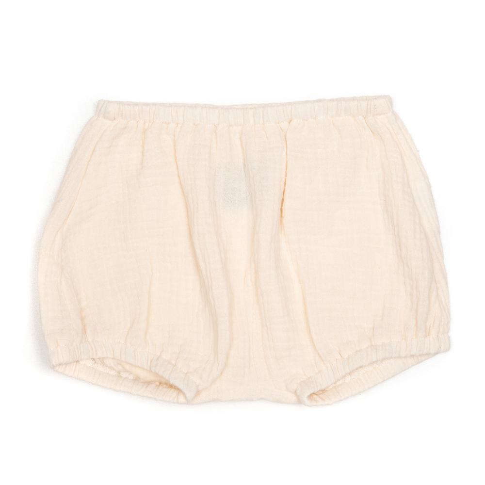 Deilig shorts i myk bomullsmuslin som kan brukes utenpå strømpebukse, som en shorts på de varmere dagene eller under kjole. Fin å kombinere med en body eller en T-skjorte.