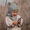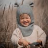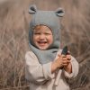 Cuteness overload:) De vakreste luene kommer fra HUTTEliHUT:) Nydelig balaklava med søte bjørneører. Luen har en rund hodeform og er laget av en bomullsfleecekvalitet som føles myk og behagelig. Innside i myk bomullsjersey. Ribbekant ved ansiktsåpningen, ekstra lengde og HUTTEliHUT-logo bak.