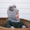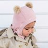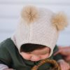 HUTTEliHUT balaclava knit merino windstop w/fakefur pompom – camel