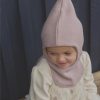 Myk og varm balaclava i to lag fra Huttelihut. Luen har en klassisk spiss hodeform og en rund ansiktsåpning med ekstra lag ved ørene som beskytter godt mot vind. Det praktiske splittdesignet nederst med ekstra lengde bak gir ekstra varme og komfort. Balaclavaen er strikket i merinoull med et mykt bomullsfôr på innsiden, perfekt for sensitive barnehoder.