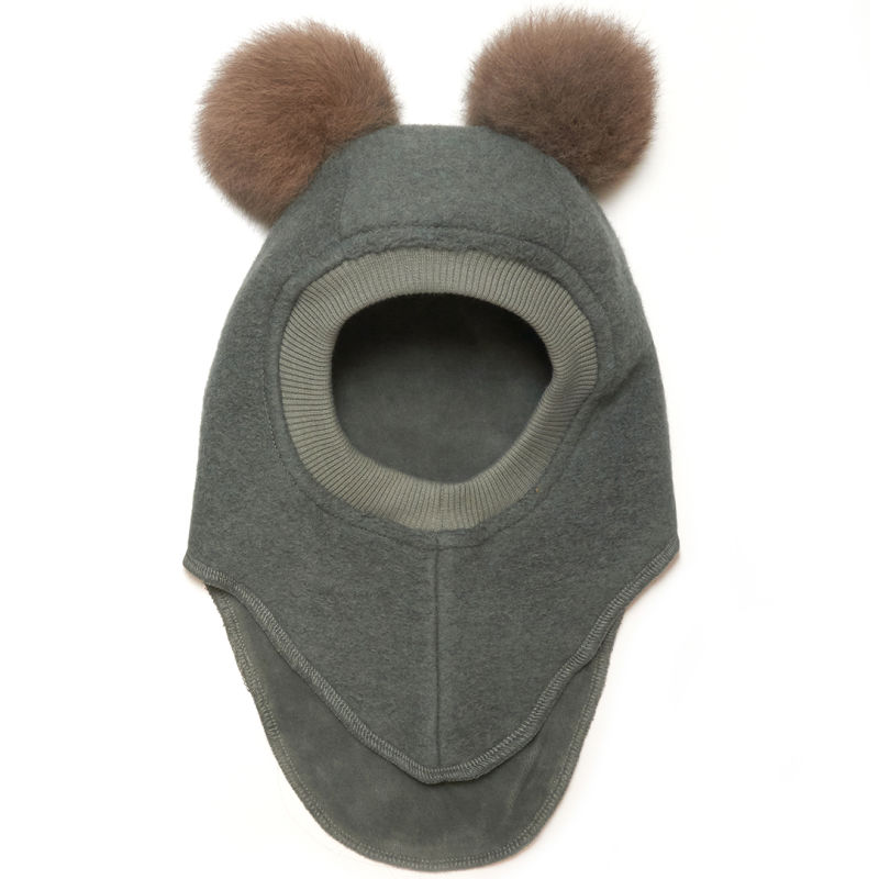HUTTEliHUT BIG BEAR elefanthut wool 2 alpaca pompoms – agave/grey
