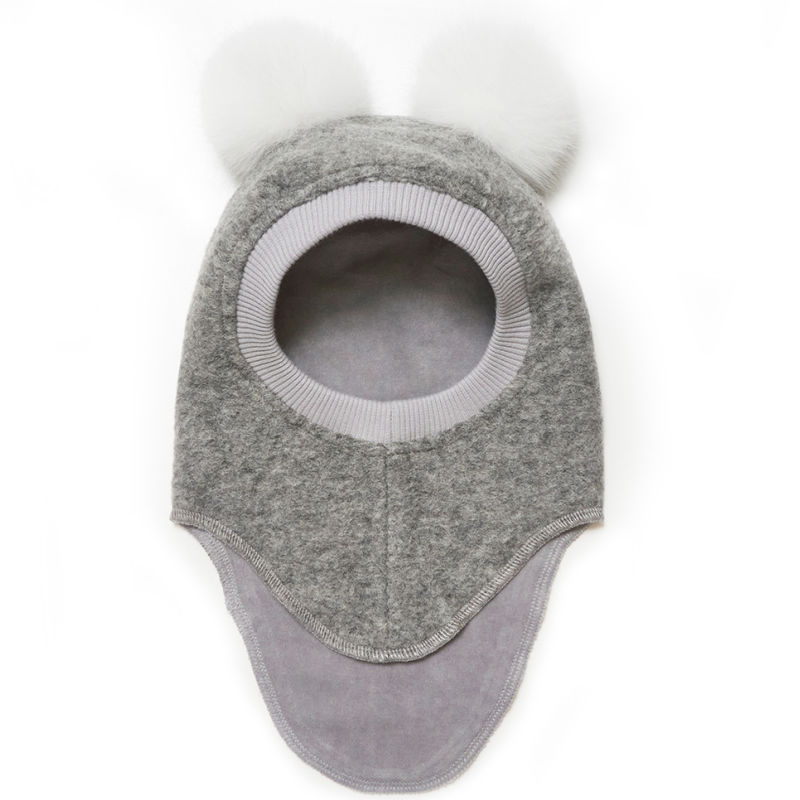 HUTTEliHUT BIG BEAR elefanthut wool 2 alpaca pompoms – light grey/white