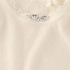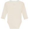 Myk body med lange ermer i ribbekvalitet som gir god komfort og fleksibilitet. Modellen har fine detaljer som broderi i halsen og babylock-kanter ved ermene. Fin som baseplagg til både bukser og leggings 🌸
