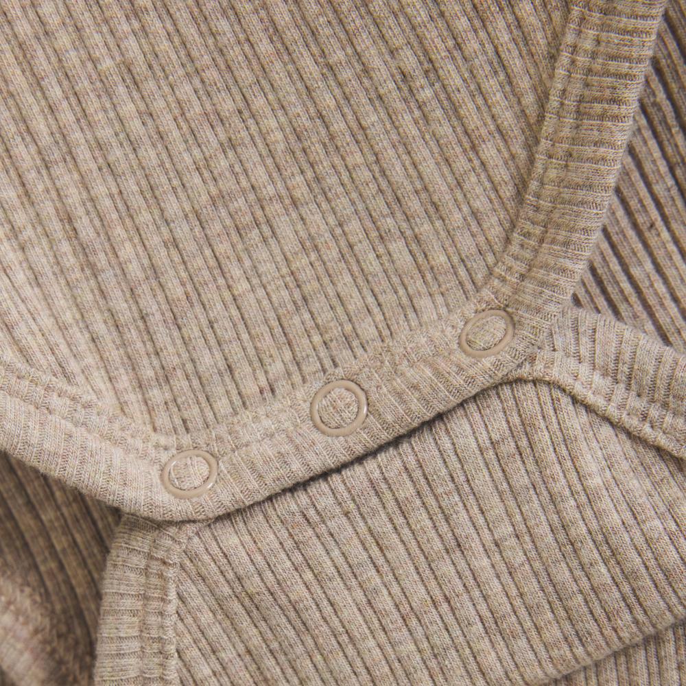 Myk body med lange ermer i ribbekvalitet som gir god komfort og fleksibilitet. Modellen har trykknapper på skulderen og mellom bena for enkel av- og påkledning.