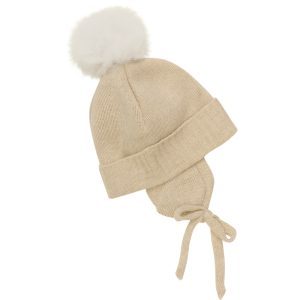 HUTTEliHUT bonnet wool knit alpaca pompon – cement
